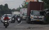 REPUBLIKA.CO.ID, BOYOLALI -- Sejumlah truk kontainer parkir di tepi jalan Ampel-Salatiga, Boyolali, Jawa Tengah, Sabtu (23/4/2022). Kementerian Perhubungan (Kemenhub) mengeluarkan aturan pembatasan angkutan barang yang mengatur waktu pemberlakuan pembatasan operasional angkutan barang di ruas jalan tol dan jalan nasional untuk arus mudik mulai 28 April-1 Mei 2022 dan arus balik mulai 6-9 Mei 2022.