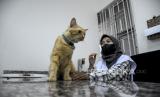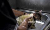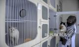 Dokter hewan merawat kucing di tempat penitipan hewan Cat Locus, Jalan Sukahaji, Sukasari, Kota Bandung, Ahad (24/4/2022). Berdasarkan keterangan pelaku usaha jasa penitipan hewan tersebut, menjelang Lebaran usahanya mengalami peningkatan permintaan hingga 100 persen dibandingkan dengan bulan sebelumnya. Foto: Republika/Abdan Syakura (FOTO : REPUBLIKA/ABDAN SYAKURA)