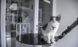 Seekor kucing berada di dalam kandang di tempat penitipan hewan Cat Locus, Jalan Sukahaji, Sukasari, Kota Bandung, Ahad (24/4/2022). Berdasarkan keterangan pelaku usaha jasa penitipan hewan tersebut, menjelang Lebaran usahanya mengalami peningkatan permintaan hingga 100 persen dibandingkan dengan bulan sebelumnya. Foto: Republika/Abdan Syakura (FOTO : REPUBLIKA/ABDAN SYAKURA)