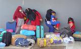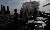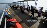 REPUBLIKA.CO.ID, JAMBI -- Pemudik belanjalan saat tiba dengan menggunakan kapal KMP Sembilang asal Batam di Pelabuhan Kapal Roro (roll on roll off) Kuala Tungkal, Tanjungjabung Barat, Jambi, Minggu (24/4/2022). Pelabuhan Roro yang melayani angkutan penumpang rute Batam-Jambi sebanyak enam kali dalam seminggu tersebut mulai dipadati sejumlah pemudik asal Kepulauan Riau.