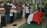 Warga dan anggota TNI melaksanakan shalat jenazah almarhum Praka Mar (Anumerta) Dwi Maftachul Ahyar di Masjid Al Abror Jalan Sumowiharjo Kecamatan Babat, Kabupaten Lamongan, Jawa Timur, Ahad (24/4/2022). Praka Mar (Anumerta) Dwi Maftachul Ahyar gugur akibat tertembak oleh kelompok kriminal bersenjata saat bertugas di Pos Satgas Kodim Mupe Yonif 3 Mar di Kalikote, Distrik Kenyam, Kabupaten Nduga, Papua, Jumat (22/4/2022). (FOTO : ANTARA/Syaiful Arif)