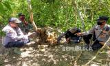 REPUBLIKA.CO.ID, ACEH TIMUR -- Petugas memasang "police line" dilokasi penemuan bangkai harimau Sumatera (Panthera tigris sumatrae) mati terkena jerat di kawasan hutan PT Aloer Timur Desa Sri Mulya, Kecamatan Peunaron, Kabupaten Aceh Timur, Aceh, Minggu, (24/04/2022). Sebanyak Tiga ekor harimau Sumatera (Panthera tigris sumatrae) yang terdiri dari satu ekor induk betina, satu ekor anak harimau jantan dan satu ekor belum diketahui jenis kelaminnya ditemukan mati diduga akibat terkena jerat babi.