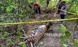 Harimau mati terkena jerat di kawasan hutan PT Aloer Timur Desa Sri Mulya..