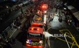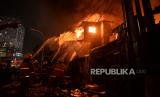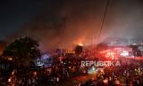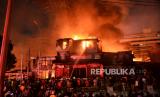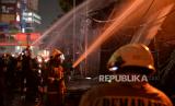REPUBLIKA.CO.ID, JAKARTA -- Petugas berusaha memadamkan kebakaran yang terjadi di Pasar Gembrong, Jakarta Timur, Ahad (25/4). Sedikitnya 14 mobil pemadam kebakaran diterjunkan untuk memadamkan api yang membakar sejumlah bangunan pertokoan dan rumah warga di Pasar Gembrong.