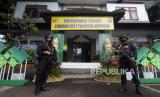 Anggota Brimob Polda Bali berjaga di area terminal saat pembukaan posko pelayanan terpadu Lebaran 2022 di Terminal Ubung, Denpasar, Bali, Senin (25/4/2022). Posko pelayanan terpadu Lebaran yang dibuka di terminal tipe B tersebut untuk melayani pemudik dari Kota Denpasar menuju ke Terminal Tipe A Mengwi, Badung pada arus mudik Idul Fitri 1443 Hijriah. (FOTO : ANTARA/Nyoman Hendra Wibowo)
