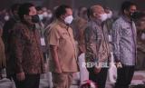 Menteri Dalam Negeri Muhammad Tito Karnavian (tengah) bersama Menteri BUMN Erick Thohir (kanan) dan Menteri Koperasi dan UKM Teten Masduki (kiri) menghadiri acara Aksi Afirmasi Pembelian dan Pemanfaatan Produk Dalam Negeri Dalam Rangka Bangga Buatan Indonesia di JCC, Senayan, Jakarta, Senin (25/4/2022). Acara yang berlangsung hingga 26 April 2022 ini meliputi pameran produk UMKM yang menghadirkan 100 UKM dengan fokus produk substitusi impor yang inovatif serta akan ada temu bisnis 10 Kementerian dan Lembaga dan 10 Pemerintah Provinsi dengan rencana umum pengadaan barang dan jasa, pengadaan produk dalam negeri yang terbesar secara offline dan online. (FOTO : ANTARA FOTO/Dhemas Reviyanto)