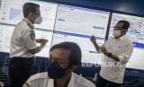 REPUBLIKA.CO.ID,JAKARTA -- Petugas memantau pergerakan arus mudik di Posko Angkutan Lebaran Terpadu 2022, Kantor Kemenhub, Jakarta, Senin (25/4/2022).