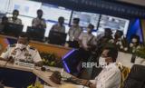 Menteri Perhubungan Budi Karya Sumadi (kedua kiri) memantau pergerakan arus mudik di Posko Angkutan Lebaran Terpadu 2022, Kantor Kemenhub, Jakarta, Senin (25/4/2022). Posko Angkutan Lebaran Terpadu yang melibatkan Kemenhub dan berbagai unsur terkait tersebut untuk melakukan pemantauan, koordinasi, komunikasi dan pengendalian lalu lintas angkutan lebaran pada masa arus mudik dan arus balik Idul Fitri 1443 H tahun 2022. (FOTO : ANTARA/Aprillio Akbar)