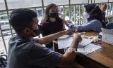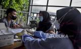 REPUBLIKA.CO.ID, BANDUNG -- Warga menjalani pemeriksaan kesehatan sebelum disuntik vaksin Covid-19 dosis ketiga (booster) di Posko Vaksinasi Covid-19 Terminal Cicaheum, Kota Bandung, Selasa (26/4/2022). Posko tersebut bertujuan untuk memfasilitasi masyarakat yang belum melaksanakan vaksinasi booster sebagai syarat perjalanan mudik lebaran 2022.