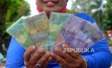 REPUBLIKA.CO.ID, YOGYAKARTA -- Beberapa uang rupiah baru yang ditawarkan di jasa penukaran uang di Jalan Panembahan Senopati, Yogyakarta, Selasa (26/4/2022). Mendekati lebaran Idul Fitri jasa penukaran uang mulai bermunculan di Timur Titik Nol Yogyakarta. Uang pecahan Rp 5 ribu dan pecahan Rp 10 ribu paling banyak dicari oleh warga untuk salam tempel lebaran. Warga yang menukarkan akan dikenai biaya 10 persen dari total uang yang ditukar.