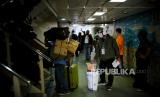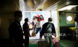 Pemudik motor membawa barang - barang miliknya ke dalam Kapal KM Dobonsolo tujuan Semarang dan Surabaya di Terminal Penumpang Tanjung Priok, Jakarta, Selasa (26/4/202). Pada pekan ke empat Ramadhan 1443 Hijriah, Pelabuhan Tanjung Priok mencatat jumlah pemudik pada 26 April 2022 sebanyak 512 orang dan 241 motor, Sementara prediksi puncak arus mudik di Terminal Penumpang Tanjung Priok terjadi pada Jumat (29/4). (FOTO : Republika/Thoudy Badai)