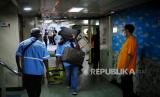 Petugas membawa membawa barang - barang milik pemudik motor ke dalam Kapal KM Dobonsolo tujuan Semarang dan Surabaya di Terminal Penumpang Tanjung Priok, Jakarta, Selasa (26/4/202). Pada pekan ke empat Ramadhan 1443 Hijriah, Pelabuhan Tanjung Priok mencatat jumlah pemudik pada 26 April 2022 sebanyak 512 orang dan 241 motor, Sementara prediksi puncak arus mudik di Terminal Penumpang Tanjung Priok terjadi pada Jumat (29/4). Republika/Thoudy Badai (FOTO : Republika/Thoudy Badai)