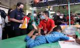 Menteri BUMN Erick Thohir (kanan) berbincang kepada pemudik saat melepas kapal mudik gratis di Pelabuhan Tanjung Priok, Jakarta Utara, Selasa (26/4/2022). Mudik gratis sepeda motor tahun 2022 diinisiasi Kementerian Perhubungan dengan Kementerian BUMN. Tercatat Sebanyak 1.109 penumpang dan 388 sepeda motor mengunakan KM Dobonsolo. Foto; Tahta Aidilla/Republika. (FOTO : Tahta Aidilla/Republika)