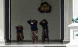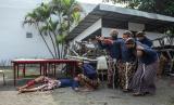 REPUBLIKA.CO.ID, YOGYAKARTA -- Abdi dalem Kraton Yogyakarta mengikuti simulasi bencana gempa bumi di Kompleks Kraton Yogyakarta, DI Yogyakarta, Selasa (26/4/2022). Simulasi penanganan gempa bumi dan kebakaran dilakukan untuk melatih kesiapsiagaan abdi dalem Kraton Yogyakarta dalam merespon potensi bencana guna mengurangi resiko dampak yang ditimbulkan.