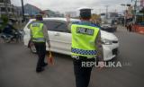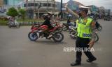 REPUBLIKA.CO.ID, CIREBON -- Anggota polisi mengatur arus kendaraan di Pos Perempatan Palimanan, Cirebon, Rabu (27/4/2022). Perempatan Palimanan yang merupakan titik pertemuan kendaraan pemudik non tol dari arah Jakarta dan Bandung menuju ke Jawa Tengah tersebut terpantau ramai lancar