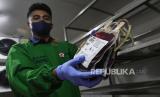REPUBLIKA.CO.ID, JAKARTA -- Petugas menunjukkan kantong berisi darah pendonor di ruang penyimpanan Palang Merah Indonesia (PMI) DKI Jakarta, Jakarta, Selasa (26/4/2022). Ketersediaan darah di PMI DKI Jakarta sepekan menjelang Hari Raya Idul Fitri mencapai sekitar 30 persen dari angka stok normal. Saat ini PMI setempat memacu ketersediaan darah dengan layanan jemput bola melalui mobil pelayanan donor darah.