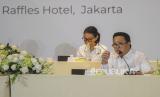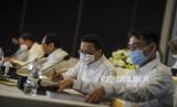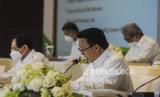 Presiden Direktur PT Adaro Energy Indonesia Tbk (Adaro) Garibaldi Thohir (kedua kanan) saat menghadiri Rapat Umum Pemegang Saham Tahunan (RUPST) Adaro di Jakarta, Rabu (27/4/2022). RUPST tersebut menyetujui dan mengesahkan laporan tahunan dan laporan keuangan konsolidasi perseroan tahun 2021, di mana Perseroan membukukan pendapatan bersih 3,993 miliar dolar AS dengan EBITDA operasional 2,1 miliar dolar AS, sementara capaian produksi tahun lalu sebesar 52,70 juta ton dan tahun ini menargetkan produksi sebesar 58-60 juta ton. (FOTO : Republika/Putra M. Akbar)