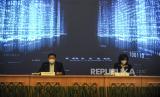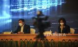 Direktur Utama Bank Mandiri Darmawan Junaidi (kiri) bersama Wakil Direktur Utama Bank Mandiri Alexandra Askandar saat menyampaikan paparan kinerja triwulanan perseroan di Jakarta, Rabu (27/4/2022). Pada Triwulan I-2022, Bank Mandiri berhasil mencetak laba bersih konsolidasi sebesar Rp 10 triliun atau tumbuh 70% yoy, yang ditopang oleh pertumbuhan kredit secara konsolidasi sebesar 8,93% (yoy) menjadi Rp 1.072,9 triliun. Melalui strategi pengembangan core business ke arah digital melalui Livin (FOTO : Republika/Putra M. Akbar)