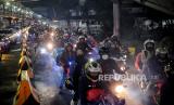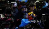 Pemudik kendaraan roda dua saat menaikan motornya kedalam kapal Wira Kencana di Pelabuhan Merak, Banten, Kamis (28/4/2022). Berdasarkan data dari PT Angkutan, Sungai, Danau, dan Penyeberangan (PT ASDP) Merak, hingga Rabu, 27 April pukul 20.00 WIB, jumlah penumpang yang menyeberang dari Pelabuhan Merak tercatat sebanyak 261.741 orang diantaranya 12.307 penumpang pejalan kaki dan 249.434 penumpang dengan kendaraan. (FOTO : Republika/Thoudy Badai)