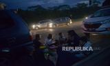 Sejumlah pemudik berbuka puasa sambil beristirahat di KM 102 ruas tol Cikopo-Palimanan, Subang, Jawa Barat, Kamis (28/4/2022). Padatnya sejumlah rest area di sepanjang jalan tol Trans Jawa membuat pemudik memanfaatkan bahu jalan untuk berbuka puasa dan istirahat sejenak.Prayogi/Republika (FOTO : Prayogi/Republika. )