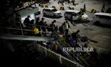 REPUBLIKA.CO.ID, MERAK -- Pemudik bersiap menaiki kapal di Pelabuhan Merak, Banten, Jumat (29/4/2022) dini hari. Pada H-3 Hari Raya Idul Fitri 1443 Hijriah, jumlah pemudik yang meninggalkan pulau Jawa menuju Sumatera melalui Pelabuhan Merak, Banten mengalami peningkatan yang signifikan, sementara berdasarkan data dari PT ASDP Indonesia Ferry (Persero) jumlah penumpang pada Kamis (28/4/2022) sebanyak 306.898 orang dan 72.540 unit kendaraan.