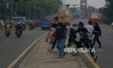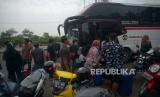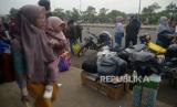 REPUBLIKA.CO.ID, CIKOPO -- Sejumlah pemudik menunggu kedatangan bus di terminal bayangan Simpang Cikopo, Jawa Barat, Sabtu (30/4/2022). Pada H-2 Hari Raya Idul Fitri 1443 H terminal bayangan simpang Cikopo tersebut masih ramai oleh pemudik dengan tujuan Jawa Tengah dan Jawa Barat.