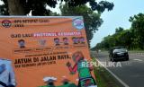 Rambu penunjuk jalan terpasang di simpang jalur pantai selatan (Pansela) pada H-2 Lebaran Idul Fitri di Sentolo, Yogyakarta, Sabtu (30/4/2022). Memasuki H-2 Lebaran lalu-lintas pemudik di jalur Pansela Kebumen-Jogja ramai lancar. (FOTO : Wihdan Hidayat / Republika)