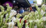 Warga melihat bunga Sedap Malam (Polianthes tuberosa) yang dijual di salah satu kios di Pasar Bunga Wastukencana, Kota Bandung, Ahad (1/5/2022). Berdasarkan keterangan pedagang di pasar tersebut, permintaan bunga Sedap Malam yang menjadi salah satu tradisi bunga hias masyarakat saat Hari Raya Idul Fitri tersebut mengalami peningkatan sebesar 20 persen dibandingkan Idul Fitri tahun lalu. Foto: Republika/Abdan Syakura (FOTO : REPUBLIKA/ABDAN SYAKURA)