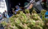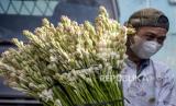 Pedagang membawa bunga Sedap Malam (Polianthes tuberosa) di Pasar Bunga Wastukencana, Kota Bandung, Ahad (1/5/2022). Berdasarkan keterangan pedagang di pasar tersebut, permintaan bunga Sedap Malam yang menjadi salah satu tradisi bunga hias masyarakat saat Hari Raya Idul Fitri tersebut mengalami peningkatan sebesar 20 persen dibandingkan Idul Fitri tahun lalu. Foto: Republika/Abdan Syakura (FOTO : REPUBLIKA/ABDAN SYAKURA)