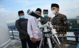 Rektor Universitas Islam Bandung (Unisba) Prof Edi Setiadi hadir saat Pelaksanaan Ruyat Hilal Awal Syawal 1443 H oleh Fakultas Syariah bekerjasama dengan Ruhul Islam Unisba di Observatorium Albiruni Fakultas Syariah Unisba, Jalan Tamasari, Kota Bandung, Ahad (1/5). Hasil dari kegiatan tersebut akan dilaporkan kepada Kementerian Agama sebagai bahan sidang isbat 1 Syawal 1443 H. (FOTO : Edi Yusuf/Republika)