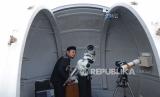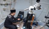 Petugas melakukan pematauan hilal saat kegiatan Ruyat Hilal Awal Syawal 1443 H oleh Fakultas Syariah bekerjasama dengan Ruhul Islam Unisba di Observatorium Albiruni Fakultas Syariah Unisba, Jalan Tamasari, Kota Bandung, Ahad (1/5). Hasil dari kegiatan tersebut akan dilaporkan kepada Kementerian Agama sebagai bahan sidang isbat untuk menentukan hari raya Idul Fitri 1 Syawal 1443 H. (FOTO : Edi Yusuf/Republika)