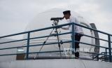 Petugas melakukan pematauan hilal saat kegiatan Ruyat Hilal Awal Syawal 1443 H oleh Fakultas Syariah bekerjasama dengan Ruhul Islam Unisba di Observatorium Albiruni Fakultas Syariah Unisba, Jalan Tamasari, Kota Bandung, Ahad (1/5). Hasil dari kegiatan tersebut akan dilaporkan kepada Kementerian Agama sebagai bahan sidang isbat untuk menentukan hari raya Idul Fitri 1 Syawal 1443 H. (FOTO : undefined)