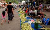 REPUBLIKA.CO.ID,JAYAPURA -- Pedagang menjual bungkus ketupat menjelang Hari Raya Idul Fitri di Pasar Paldam, Jayapura, Papua, Ahad (1/5/2022).
