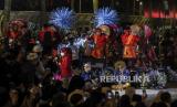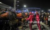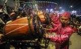 Sejumlah peserta saat tampil pada Festival Tabuh Bedug di Jakarta International Stadium, Jakarta, Ahad (1/5/2022). Festival Tabuh Bedug yang diikuti oleh peserta dari 5 wilayah administrasi DKI Jakarta tersebut dalam rangka memeriahkan malam takbiran menyambut 1 Syawal 1433 Hijriah. (FOTO : Republika/Putra M. Akbar)