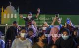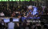 Sejumlah warga saat menyaksikan Festival Tabuh Bedug di Jakarta International Stadium, Jakarta, Ahad (1/5/2022). Festival Tabuh Bedug yang diikuti oleh peserta dari 5 wilayah administrasi DKI Jakarta tersebut dalam rangka memeriahkan malam takbiran menyambut 1 Syawal 1433 Hijriah. Republika/Putra M. Akbar (FOTO : Republika/Putra M. Akbar)