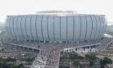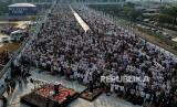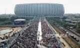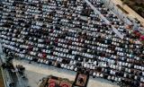 REPUBLIKA.CO.ID, JAKARTA -- Foto aerial jamaah melaksanakan shalat Idul Fitri di Jakarta International Stadium (JIS), Jakarta, Senin (2/5/2022). Ribuan warga melaksanakan Sholat Idul Fitri 1443 Hijriah di Jakarta International Stadium yang merupakan pertama kali digelar untuk beribadah setelah pengerjaan stadion tersebut rampung.