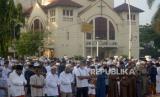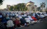 REPUBLIKA.CO.ID, JAKARTA -- Umat muslim menunaikan shalat ied 1443 H di ruas Jalan Jatinegara, Jakarta, Senin (2/4/2022). Pemerintah melalui Kementerian Agama menetapkan Idul Fitri 1443 H jatuh pada Senin 2 Mei 2022. Momen Lebaran tahun ini berbeda dengan tahun-tahun sebelumnya yang masih banyak pembatasan akibat covid-19, Masyarakat kembali diperbolehkan untuk melaksanakan sholat ied berjamaah di tempat terbuka.