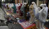 REPUBLIKA.CO.ID, SURABAYA -- Umat Islam melaksanakan Shalat Idul Fitri 1443 H di salah satu masjid di pemukiman padat penduduk di Surabaya, Jawa Timur, Senin (2/5/2022). Pelaksanaan shalat id secara berjamaah tersebut merupakan yang pertama ditengah pandemi COVID-19 setalah dua tahun terakhir pemerintah menghimbau untuk menunaikannya di rumah.