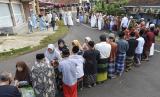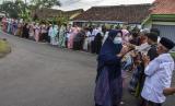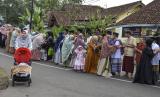 REPUBLIKA.CO.ID, CIAMIS -- Sejumlah warga bersalaman usai melaksanakan salat Idul Fitri 1443 Hijriyah di Desa Darmaraja, Kabupaten Ciamis, Jawa Barat, Senin (2/4/2022). Tradisi bersalaman massal Lebaran antar Dusun atau Kampung dilaksanakan kembali setelah dua tahun Pemerintah memberlakukan Pemberlakuan Pembatasan Kegiatan Masyarakat (PPKM) akibat pandemi COVID-19.