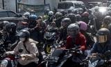 REPUBLIKA.CO.ID,KARAWANG -- Pemudik dengan sepeda motor melintas di kawasan Simpang Jomin menuju arah Jakarta di Karawang, Jawa Barat, Kamis (5/5/2022).