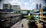 Suasana lengang di Pasar Tanah Abang, Jakarta, Kamis (5/5/2022). Pasar Tanah Abang tutup selama satu pekan mulai dari tanggal 1 hingga 8 Mei 2022 mendatang. Namun sejumlah pedagang memilih tetap berjualan di area trotoar kawasan Pasar Tanah Abang pada musim libur lebaran 2022. (FOTO : Republika/Thoudy Badai)