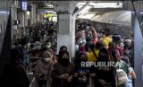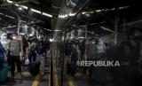 Sejumlah penumpang berada di dalam kereta api (KA) Lokal Bandung Raya di Stasiun Bandung, Kota Bandung, Kamis (5/5/2022). PT KAI Daop 2 Bandung mencatat sekitar 30 ribu penumpang kereta api turun di area Daop 2 Bandung pada puncak arus balik lebaran 2022 di hari Rabu (4/5) dan Kamis (5/5). (FOTO : REPUBLIKA/ABDAN SYAKURA)