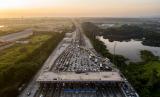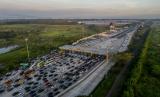 REPUBLIKA.CO.ID,KARAWANG -- Foto udara kendaraan pemudik antre memasuki Gerbang Tol Cikampek Utama di Karawang, Jawa Barat, Jumat (6/5/2022).