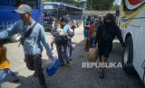 Pemudik tiba dari kampung halaman di Terminal Baranangsiang, Kota Bogor, Jawa Barat, Jumat (6/5/20222). Sejak Kamis (5/5/2022) Arus balik di terminal tersebut terus meningkat dan diperkirakan akan mencapai puncaknya pada Sabtu (7/5/2022) seiring dengan berakhirnya libur lebaran 2022.Prayogi/Republika. (FOTO : Prayogi/Republika.)