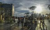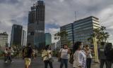 Pengunjung bersantai di kawasan Sarinah, Jakarta, Jumat (6/5/2022). Kawasan tersebut menjadi salah satu destinasi baru bagi warga Jakarta dan sekitarnya untuk memanfaatkan libur Idul Fitri 1443 H bersama keluarga dan kerabat. (FOTO : ANTARA/Galih Pradipta)