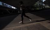 Warga melintas di bawah Jembatan Semanggi, Jakarta, Ahad (8/5/2022). Warga memanfaatkan hari Minggu setelah libur cuti Lebaran untuk berolahraga. (FOTO : ANTARA/Sigid Kurniawan)