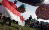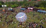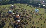 Foto udara sejumlah warga menerbangkan balon udara yang ditambatkan di tanah saat (FOTO : ANTARA/Harviyan Perdana Putra)