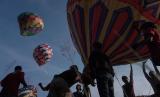REPUBLIKA.CO.ID, PEKALONGAN -- Sejumlah warga menerbangkan balon udara yang ditambatkan di tanah saat "Balloon Attraction Pekalongan 2022" di Lapangan Mataram, Kota Pekalongan, Jawa Tengah, Ahad (8/5/2022).