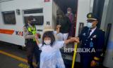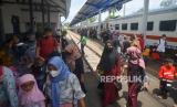 REPUBLIKA.CO.ID, PADANG -- Sejumlah penumpang turun di Stasiun Kereta Api (KA) Pariaman, Sumatera Barat, Ahad (8/5/2022). PT KAI Divre II Sumbar mencatat, sebanyak 33.625 penumpang memanfaatkan libur lebaran dengan berwisata menggunakan moda transportasi kereta api ke Pantai Gandoriah, Pariaman, dimana jumlah tersebut meningkat daripada hari biasa.
