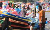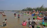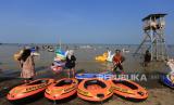 REPUBLIKA.CO.ID, INDRAMAYU -- Sejumlah pengunjung menikmati suasana di kawasan wisata Pantai Karangsong, Indramayu, Jawa Barat, Minggu (8/5/2022). Warga memanfaatkan sisa libur cuti bersama atau hari terakhir libur Lebaran untuk berwisata bersama keluarga di pantai tersebut.